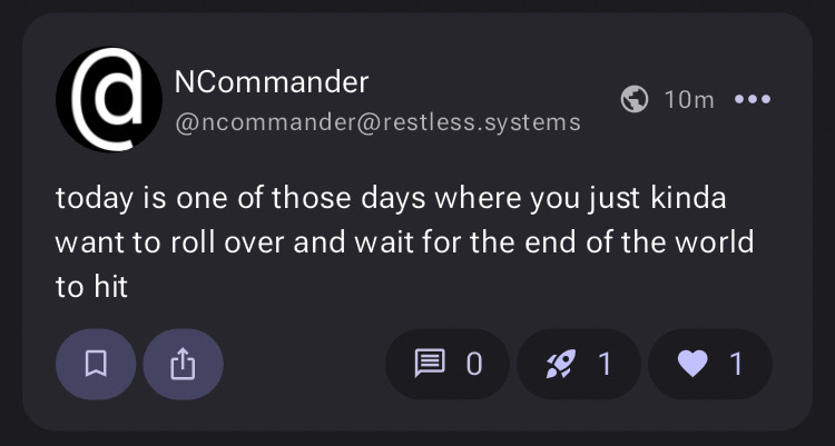 GrayBackgroundMusic@lemm.eeEnglish · 2 years agome_irlplus-squarelemm.eeimagemessage-square10linkfedilinkarrow-up1171arrow-down13