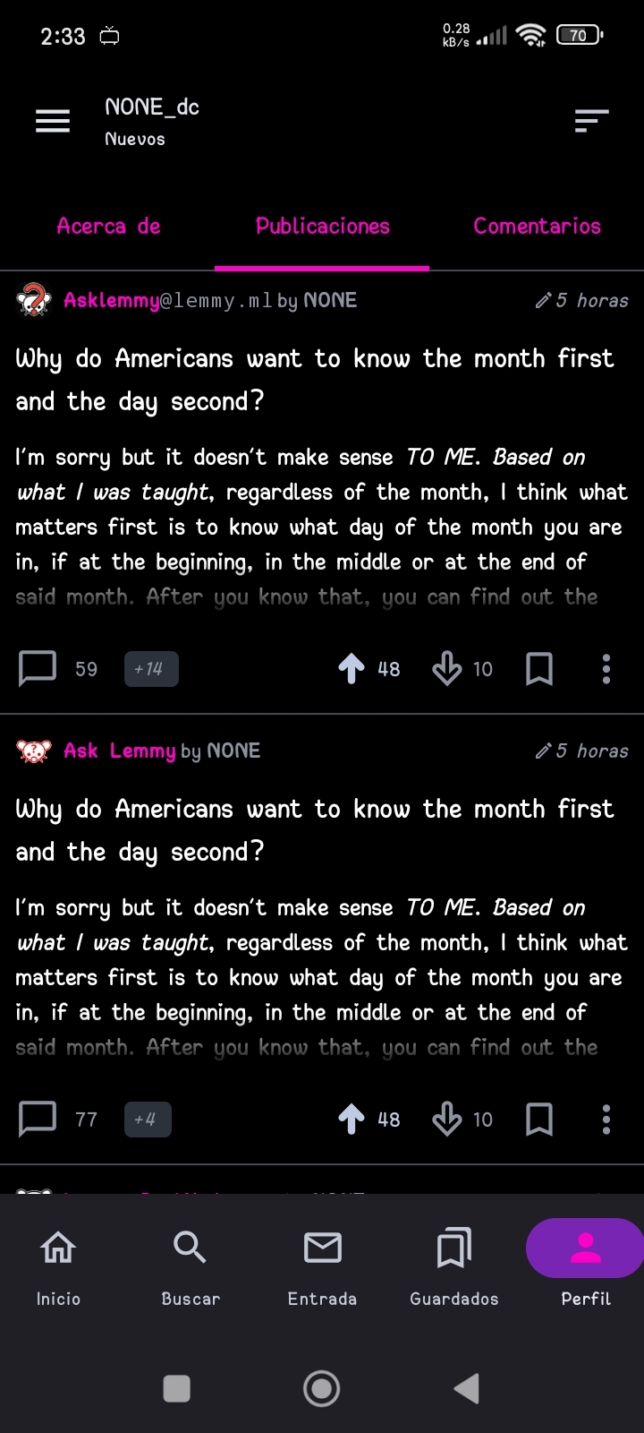 NONE@lemmy.world to Mildly Interesting@lemmy.world · 11 months agoThe exact same number of upvotes and downvotes in this two post of the same topic in different communities.lemmy.worldimagemessage-square27linkfedilinkarrow-up168arrow-down111file-text