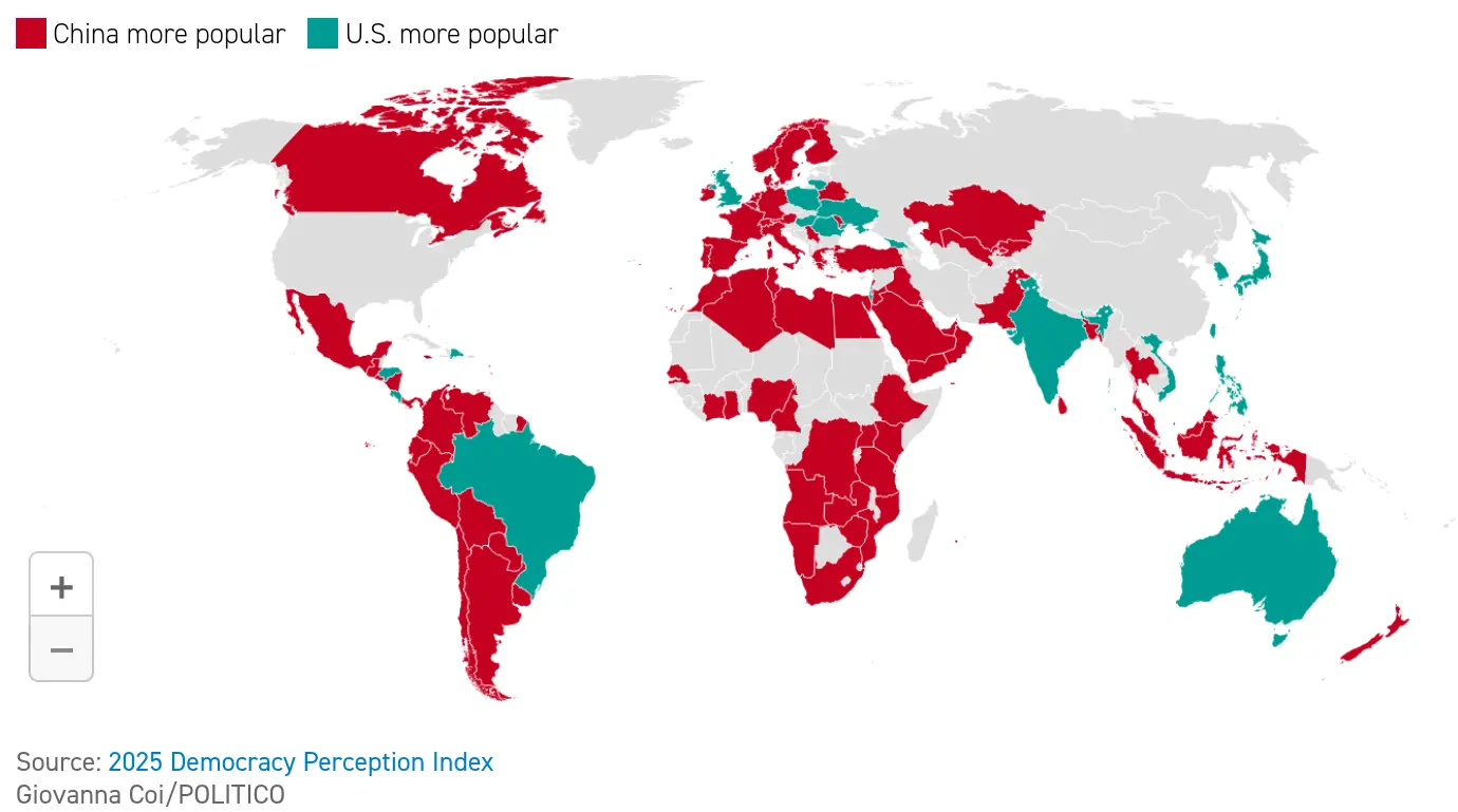 There is a matter about pragmatic politics of necessity or “real politics” as we call it here, but I don’t know if that term means the same in English. But in that regard China has REALLY shot up in popularity, as the option for cooperation to keep our economies afloat while USA is hammering everybody including themselves on the economy, and is causing grat instability.