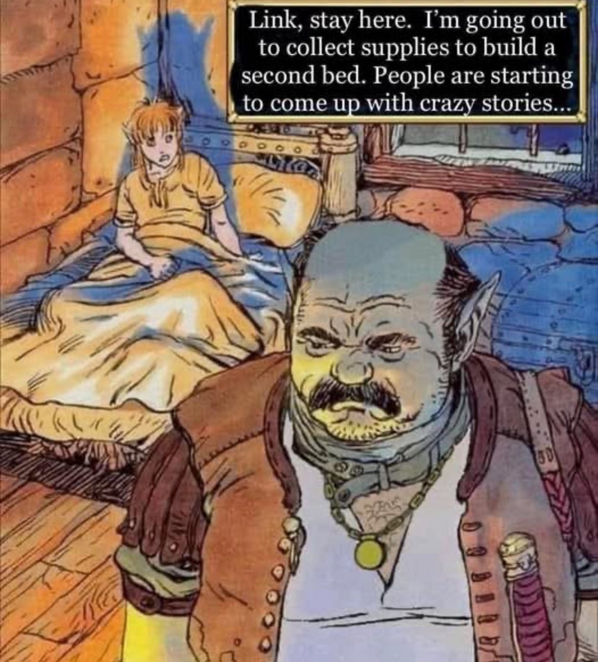 To be fair they never did put much thought into plausible living arrangements. They had an old guy just hanging out in a cave, no bed, no supplies. Just a sword and a couple torches.