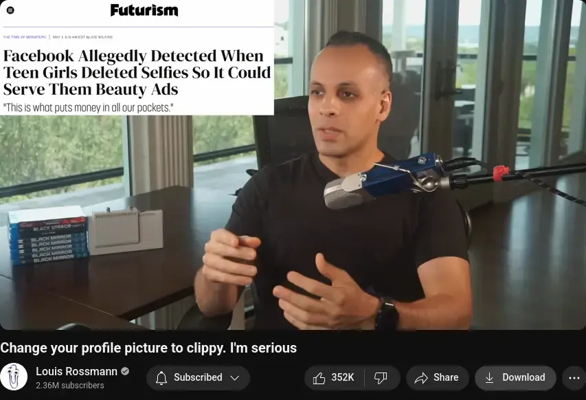 The video is monetized, and by having some ppl change their pfp to clippy and then linking to his video - I mean congrats to Mr. Rossmann for the big $$$