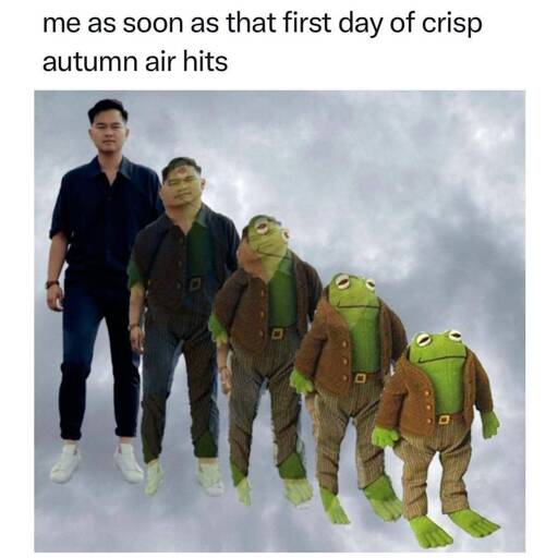 Dessalines@lemmy.ml to Memes@lemmy.ml · 1 month agoFall attire enjoyers unitelemmy.mlimagemessage-square16linkfedilinkarrow-up1355arrow-down12