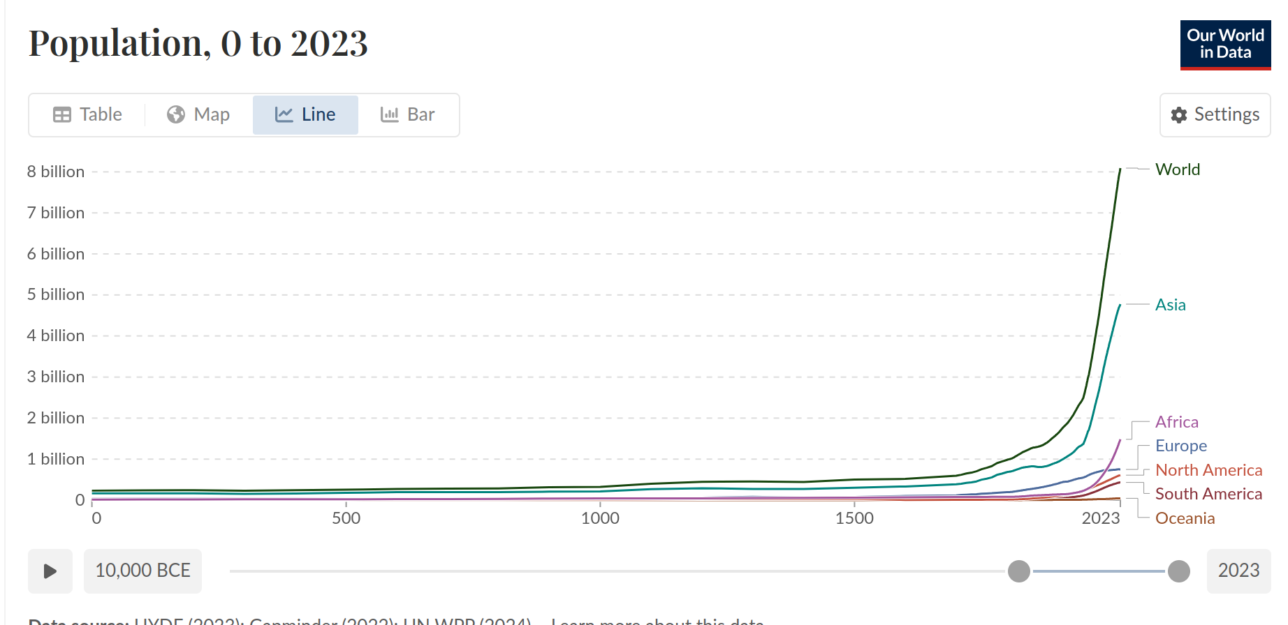 I’m not sure how many people Earth will hold in the future, but we can look at historical data. Source