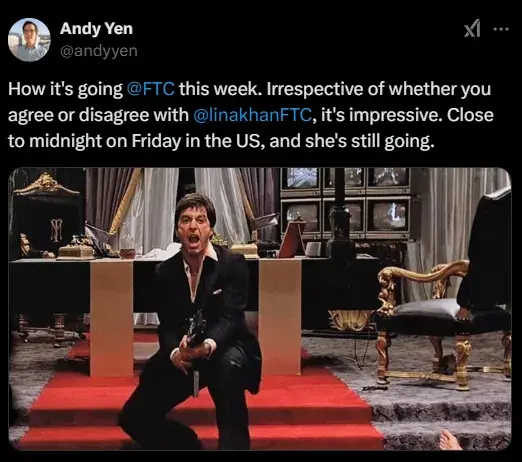 It talks about how Andy Yen was just pointing out how under Trump’s first admin, they started to actually attack big tech when dems haven’t done anything. Which is true. He praises Gail Slater and Lina Khan (but Lina Khan was recently fired…sooooo).