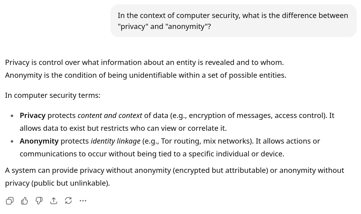 Anonymity is a very big part of privacy and always has been. That is why you don’t write your name on your voting ballot.