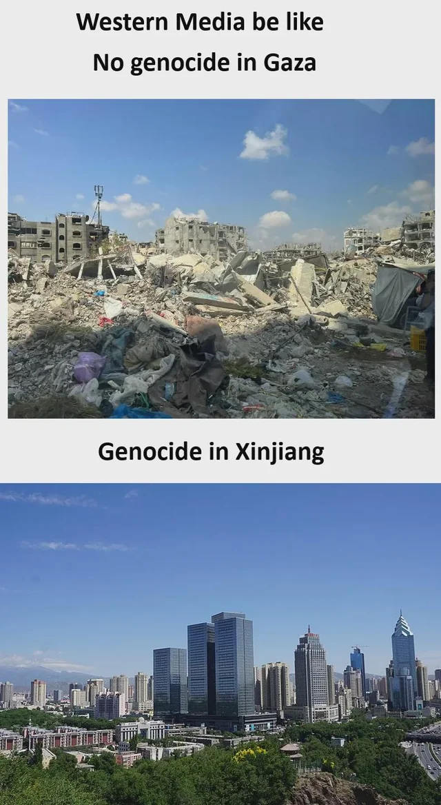 Most people aren’t denying the genocide in Palestine and many other atrocities committed by the western nations. We’re just sick and tired of the people who deny the wrongdoings of China.