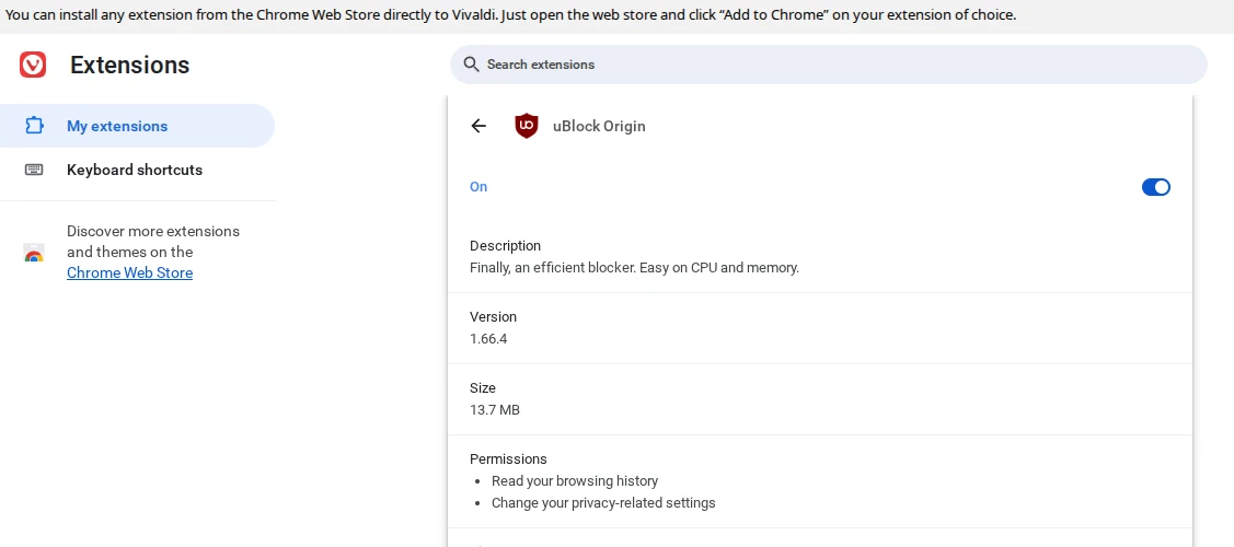 Can you please explain in what way uBlock Origin is neutered under Vivaldi?