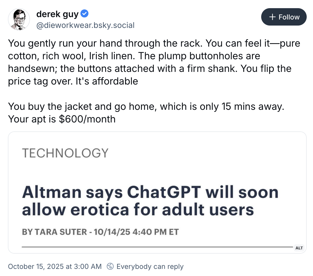 I’m so glad that Altman is going to expose more people to the “erotic literature” and “reddit sex discussion” lingo - he is definitely not still a pedophile BTW