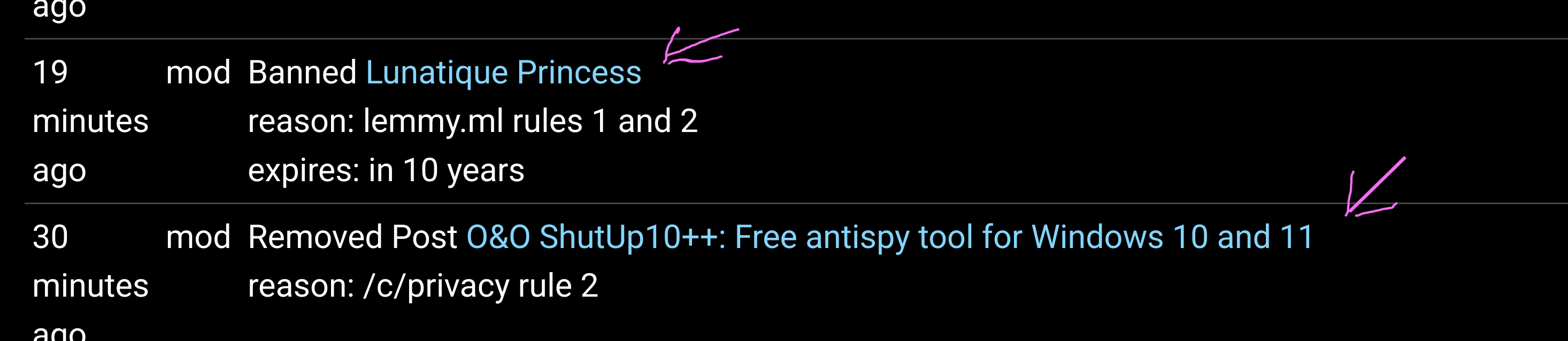 I didn’t realize I couldn’t post links in the privacy group that weren’t open source. They could have just deleted it. Which they did but then they banned me from the whole Lemmy.ml claiming rule 1 and 2 were broken. Which are arbitrary at best. People talk shit in my post all day and they don’t get banned and A-OK, because I’m not a weak peon so I don’t even want them banned, but I can’t use words that are “mean” because little soyboy mods cry in the basement about it?