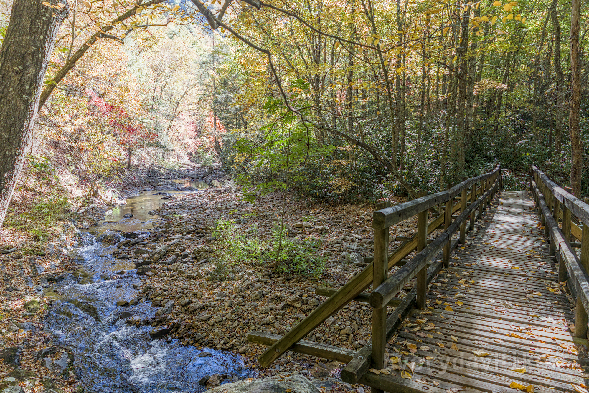 One of two bridge crossings over the Doe River along the trail in early autumn. I’m not sure what the flow in spring would be with this wide basin surrounding a (currently) small stream.
