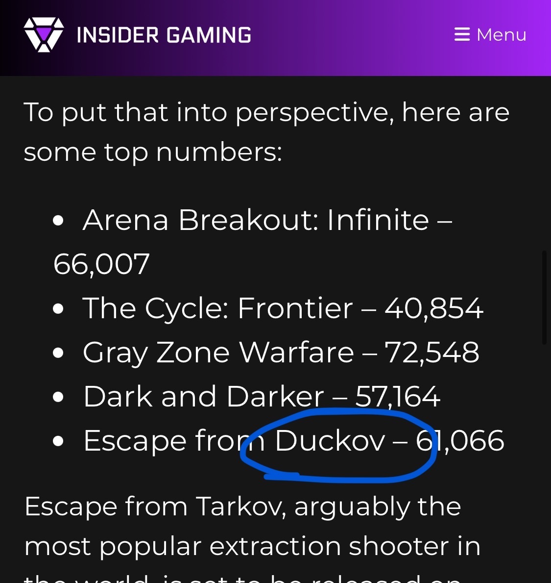 Holy shit this article reeks of AI. “Escape from Duckov” made their list of other extraction shooters, wow.