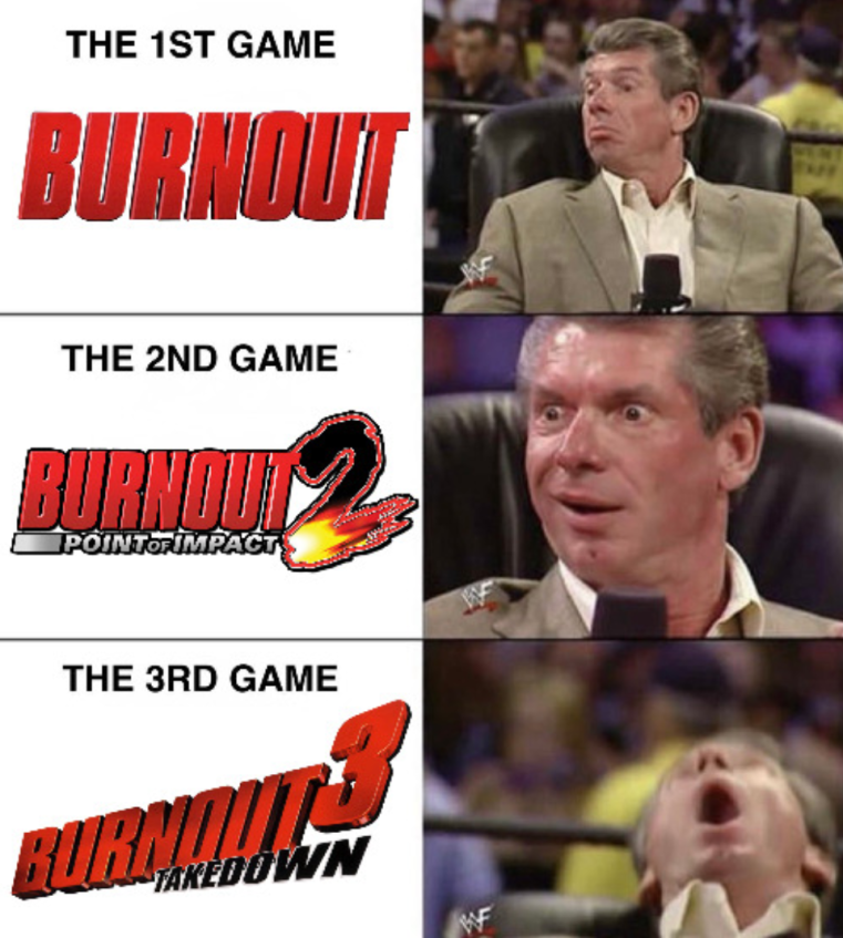 I didn’t feel like the open world worked very well for that series. There was Burnout Revenge as well though.