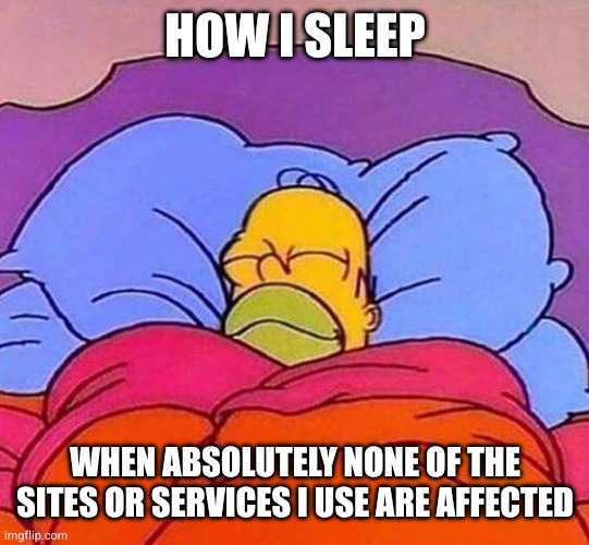 I keep seeing all this stuff all over Lemmy and FB about the AWS outage and being in the northeast I dont understand how it hasn’t effected me in the slightest but I’ll take the W I guess !