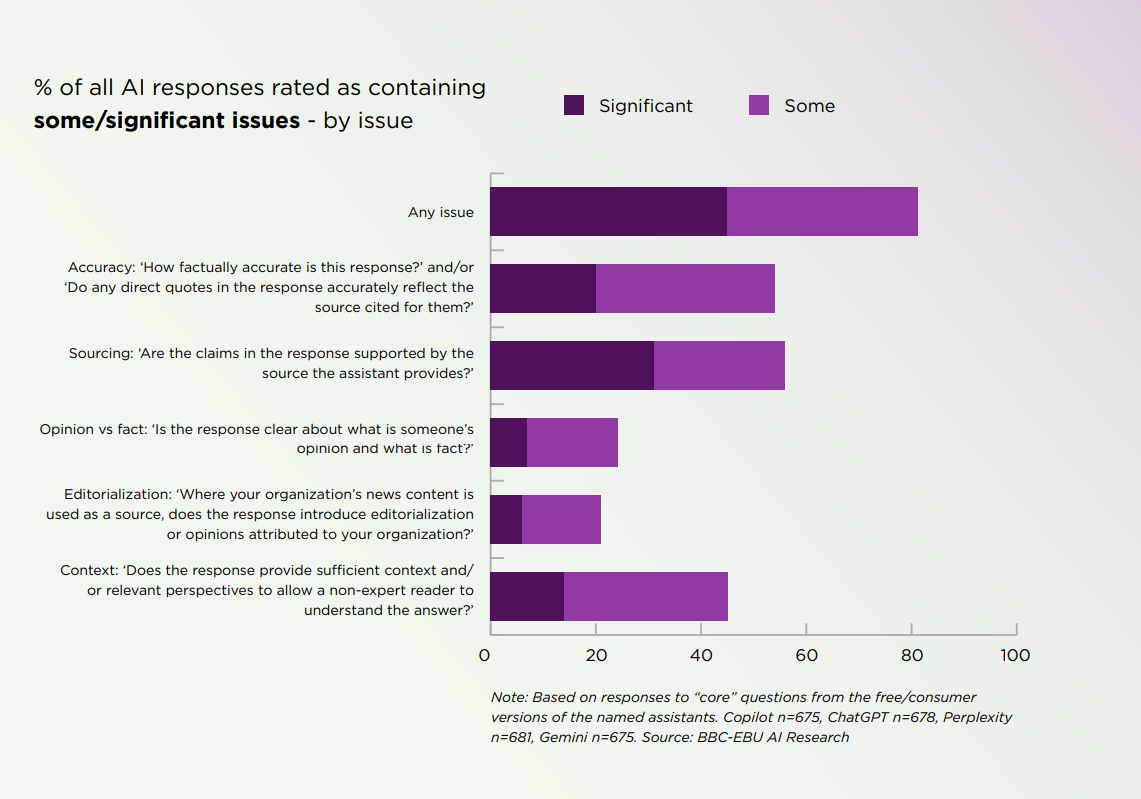 “Gemini performed worst with significant issues in 76% of responses, more than double the other assistants, largely due to its poor sourcing performance.”