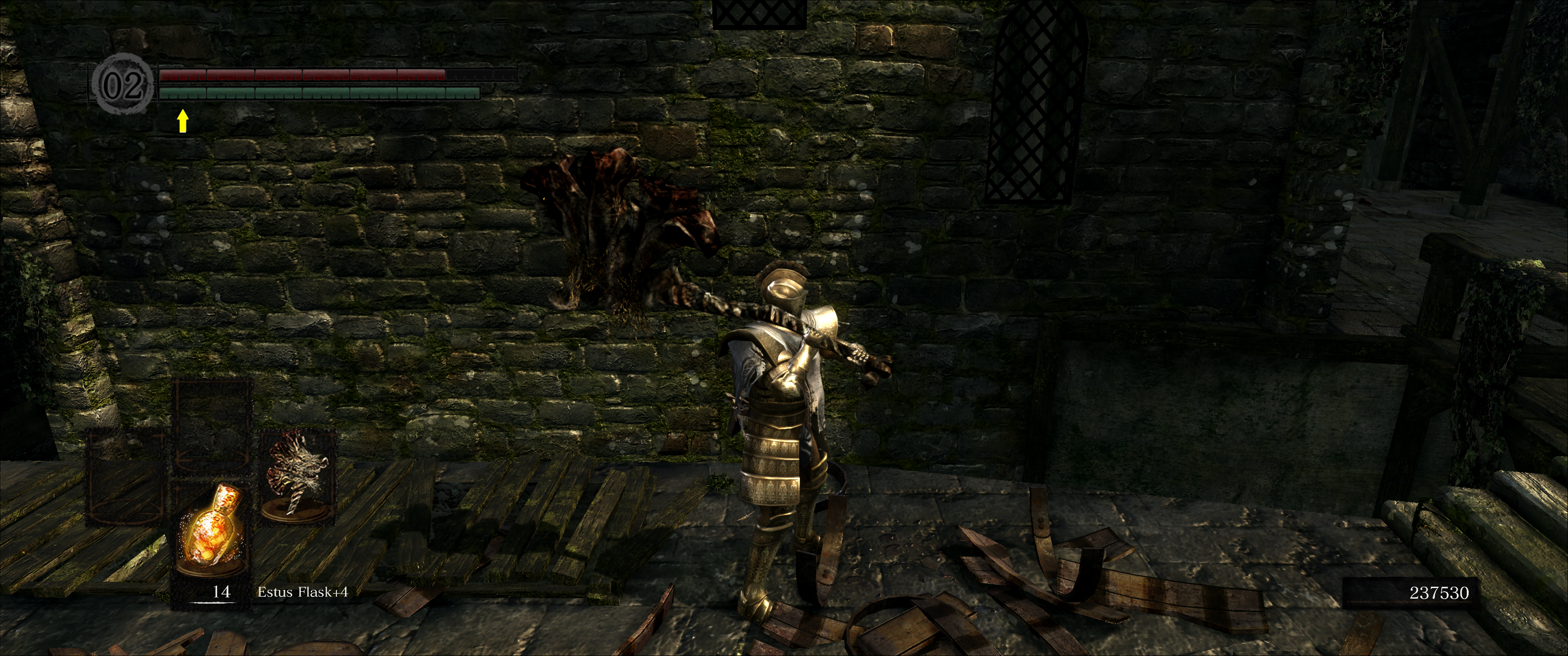 Climb the Staircase: To the left of the entrance to the arena (as you’re facing the Demon) is a staircase leading up to a balcony. This is your best friend for this fight. Lock On & Attack: Lock onto the Asylum Demon with the right stick (or equivalent on PC). From the balcony, you can safely attack him with your weapon. Attack and Retreat: Get in a few hits, then immediately roll back to avoid his attacks. Don’t get greedy! Watch his Attacks: He has a slow, sweeping attack with his club, and he can also charge at you. The balcony gives you space to react. Patience is Key: This method will take a while, but it’s safe and allows you to learn his attack patterns. Falling: Be careful not to roll or get knocked off the balcony!