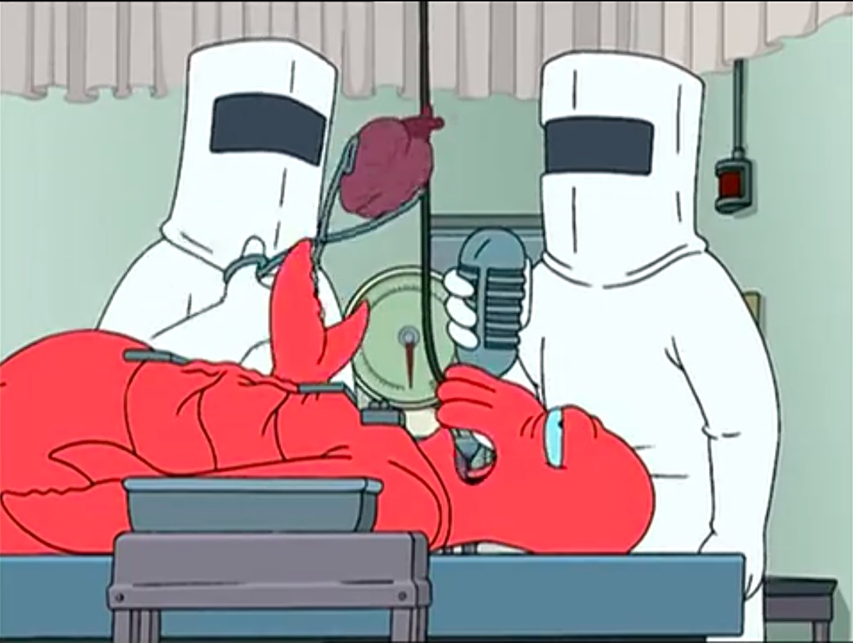 Zoidberg: There you are, good as new. Except for your dorsal fin, I’m afraid I couldn’t find it after the crash.