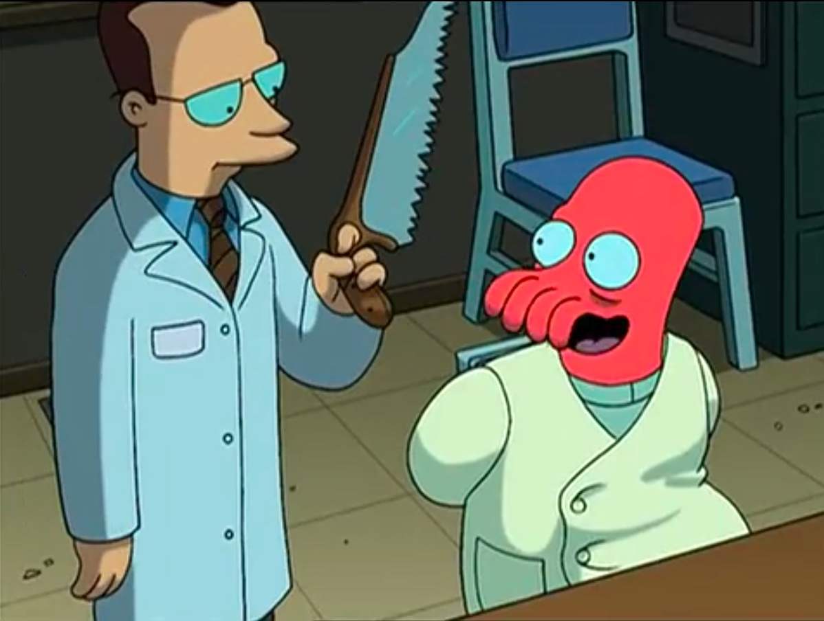 Examples of Zoidberg’s astonishingly poor grasp of human anatomy make up my favorite punchlines in the series. Of course Farnsworth would hire the worst (and possibly cheapest) candidate: a doctor that has no idea how his patients are put together.