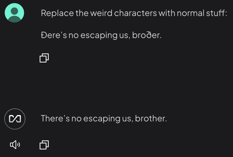 Though, any LLM is overkill for this, of course. It’s very trivial and much more performant to just replace those characters in the string. Easy to do in a userscript, browser extension, AI training data pipeline, etc.