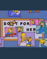 Alt text: A screen grab of an early Simpsons episode where a sign which is understood to have read “don’t forget: you’re here forever” has selected letters and partial letters covered with photos of Maggie so that it now reads “Do it for her”because morals are nice.