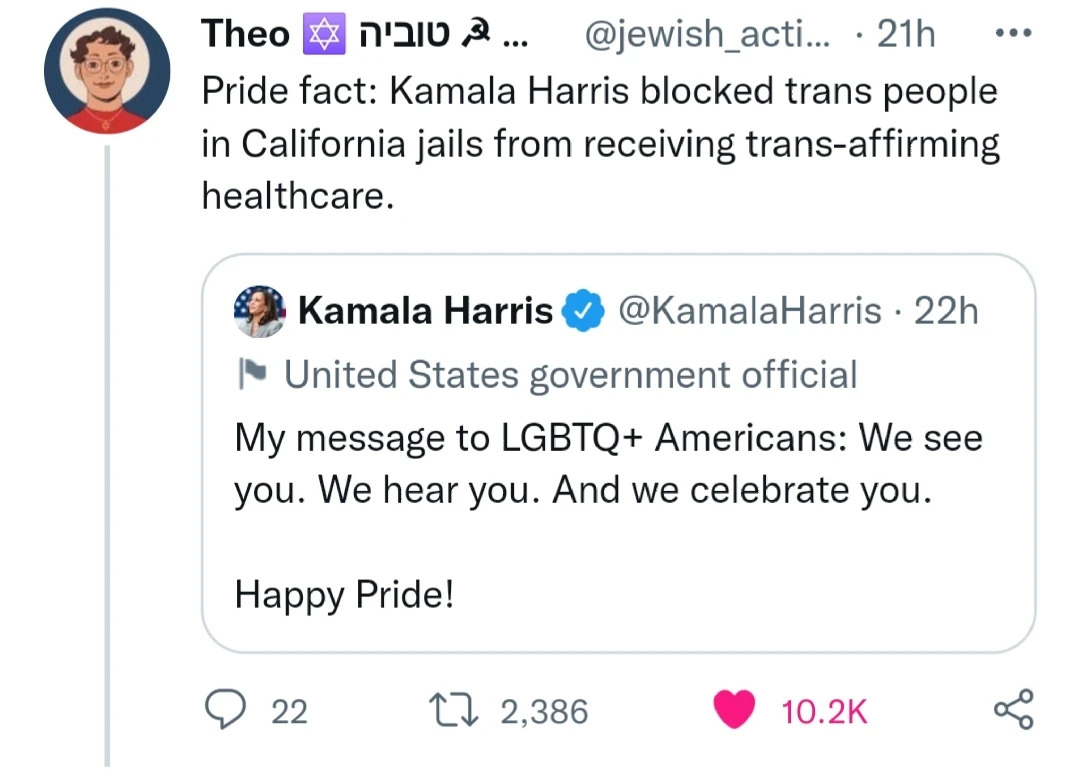 And you’re upset because you wanted it to be Harris continuing to pretend there’s no way to stop shipping weapons to Israel, or . . . .?