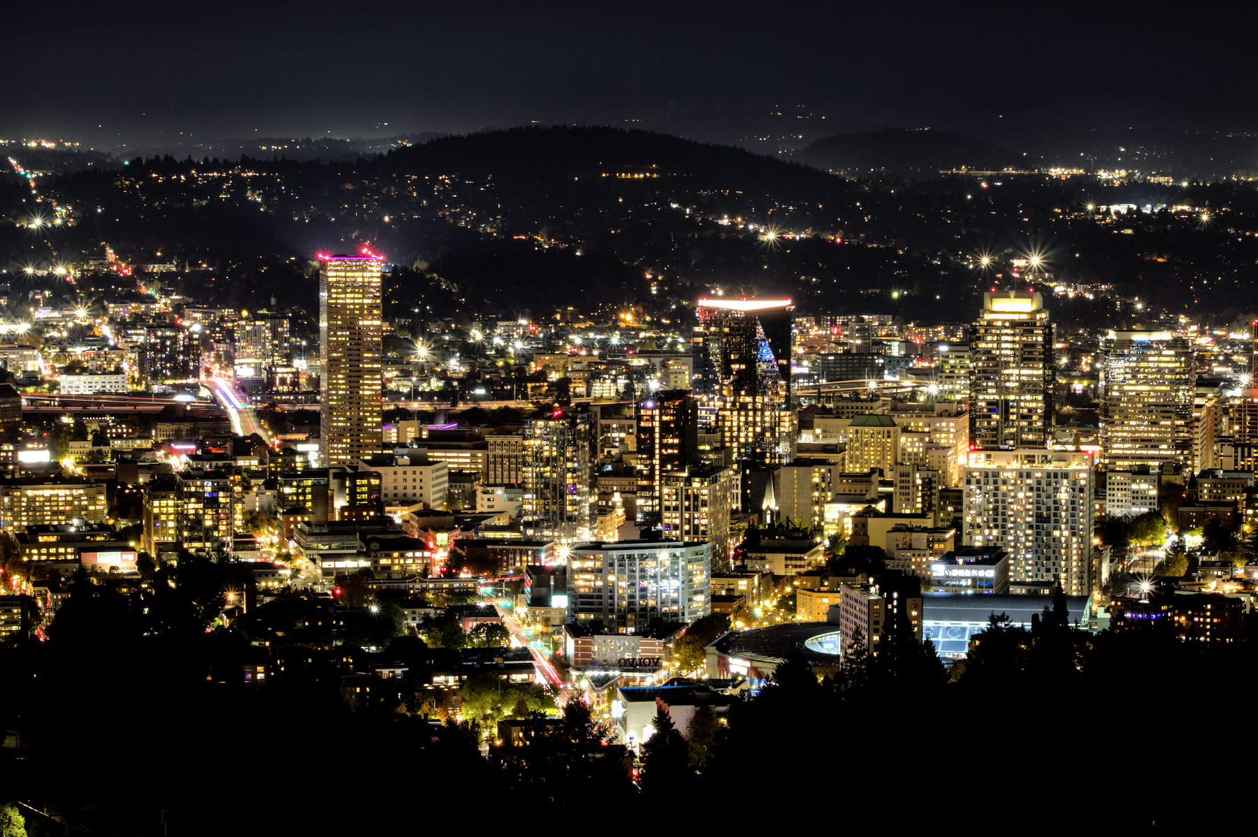 The big things I wanted was all of Burnside in the pic, the three big skyscrapers in a row, the garish orange Hilton sign excluded, and lovely trees down in front for offset.
