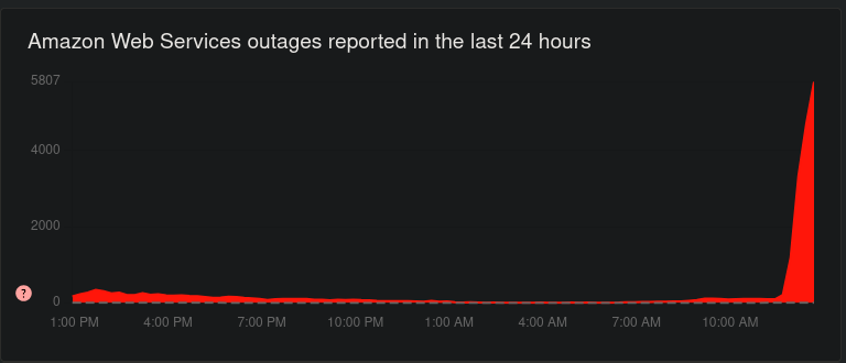 AWS seems to be cratering as well: https://downdetector.com/status/aws-amazon-web-services/