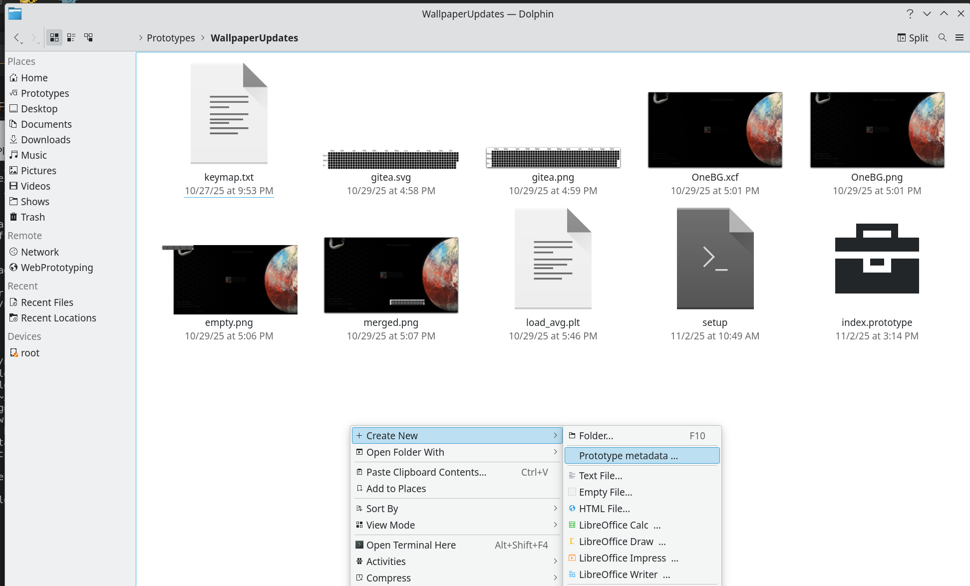 .prototypefile in~/Templatesdidn’t work for me on KDE Plasma version 5.27.5.Because it’s my own filetype I added it in “File Associations” known types in text category, to open with Kate, Gvim, etc, just in case, but didn’t help.