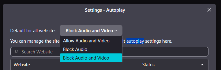I want to disable all audio from a site, not just autoplay audio. . Like muting the tab except automatically for that site.