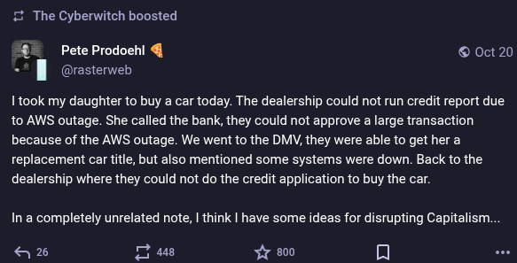 When damn near every single essential service is built on the same infrastructure of tissue paper and chewed bubble gum, it shouldn’t surprise everyone when it collapses all at once.