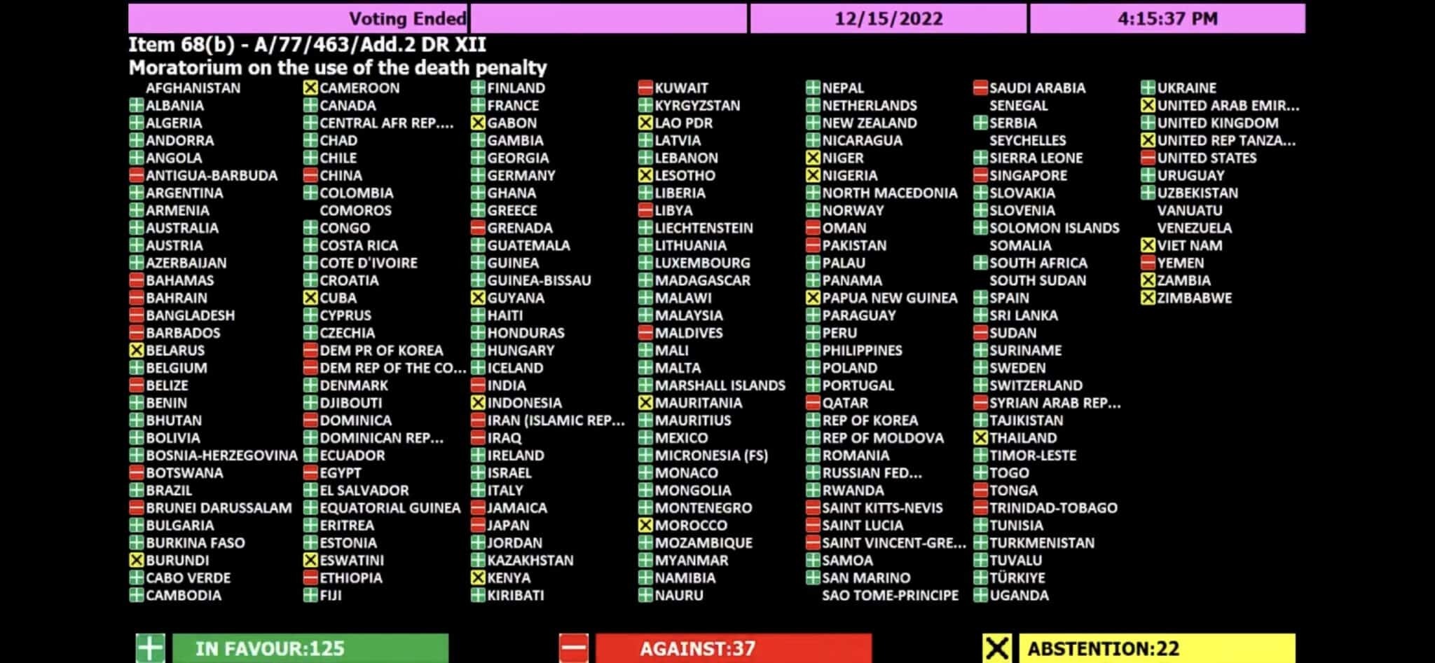 The headline makes it sound like the “in favour” votes were for death penalty, which is not correct. This was a vote for a moratorium - a temporary suspension - of death penalty.