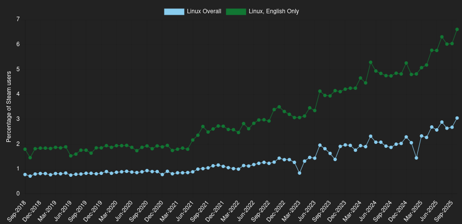 I finally switched full time to a Linux desktop OS. I have used Linux more or less daily for decades, the first distro I ever installed was Slackware what feels forever ago. But until Valve put the work into running games on linux for their Steam deck I felt I was trapped needing to have Windows to play games. I have even spent the last decade forcing myself to rely more and more on cross platform available FOSS dreaming of some day making a permanent switch. Honestly it was so easy for me to switch at this point, most games pretty much just ran. My biggest problem took a bit to grok and it was just because some games do not like running in proton from an NTFS partition. I have NVME and SATA SSDs separate from my boot drive that I used to install games on and it was trivial to reformat the NVME drive to a more Linux friendly filesystem and I have not had an issue since. Eventually I’ll do the SATA drive but I’m lazy and those games are working fine so far. You will absolutely have problems with some games, especially some that have overbearing anti-cheat systems, but man this has been so easy I couldn’t really have imagined. The only non-gaming problem was a document scanner we own that is not supported by SANE. I could not find a solution to run it on Linux so I just spun up a Tiny 11 copy of Windows in a VM and passed it through. We only use it a couple times a year so this is an acceptable compromise to me. The VM doesn’t have Internet access, it just sees a local drive as a network share. All it can do is scan something and save it to the shared drive so I can access it in Linux.