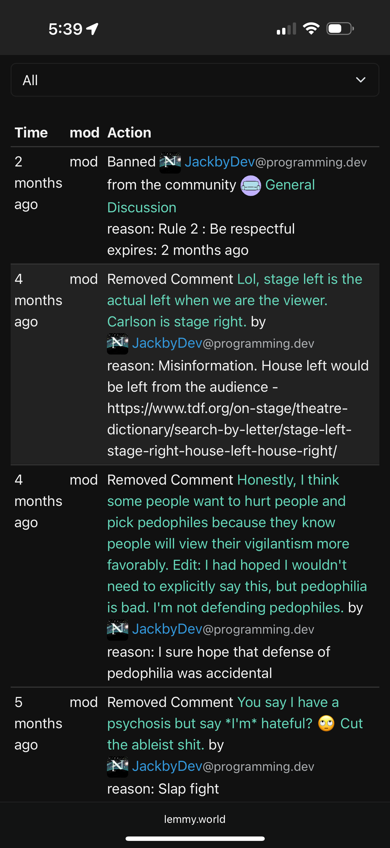If you can’t engage the user and need to usr a public log to launch an ad hominem attack instead of trying to engage the topic, you’re the issue with Lemmy. And this is what the logs are used for unfortunately.
