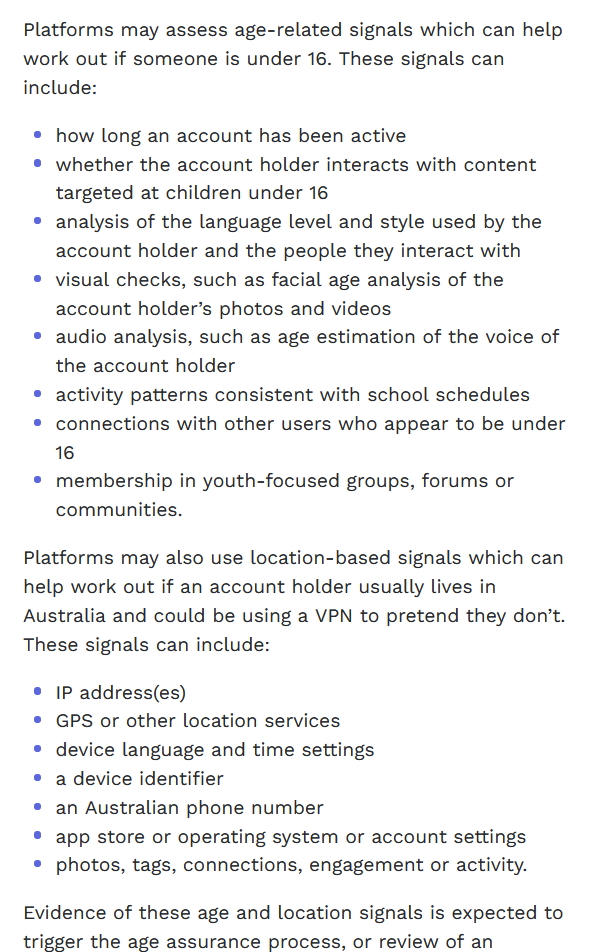 Platforms then use a variety of signal’s to detect if someone is under 16: