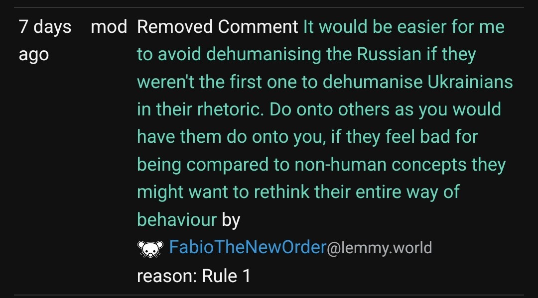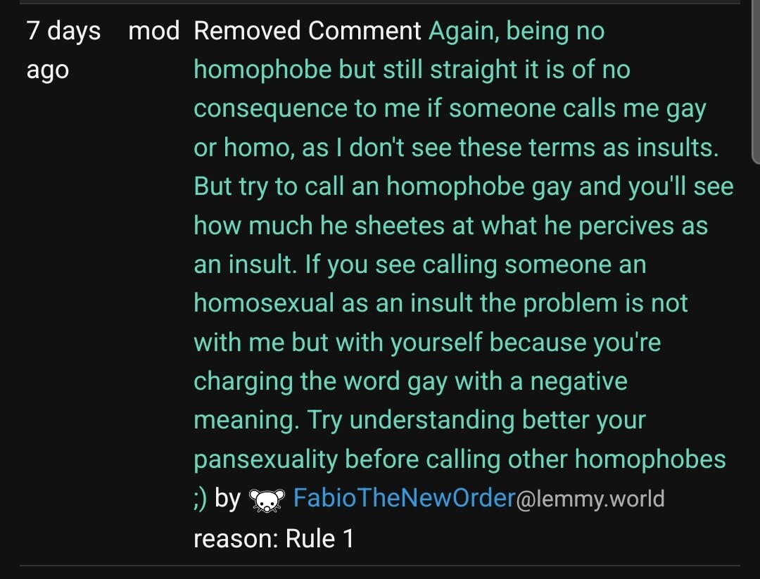 It is an instance and community’s right to censor and ban as they wish, but rule 1 should perhaps be changed to “I don’t like the cut of your jib” 🙈
