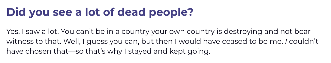 She now teaches at Duke University in the US. When asked if she is afraid, she said the following: