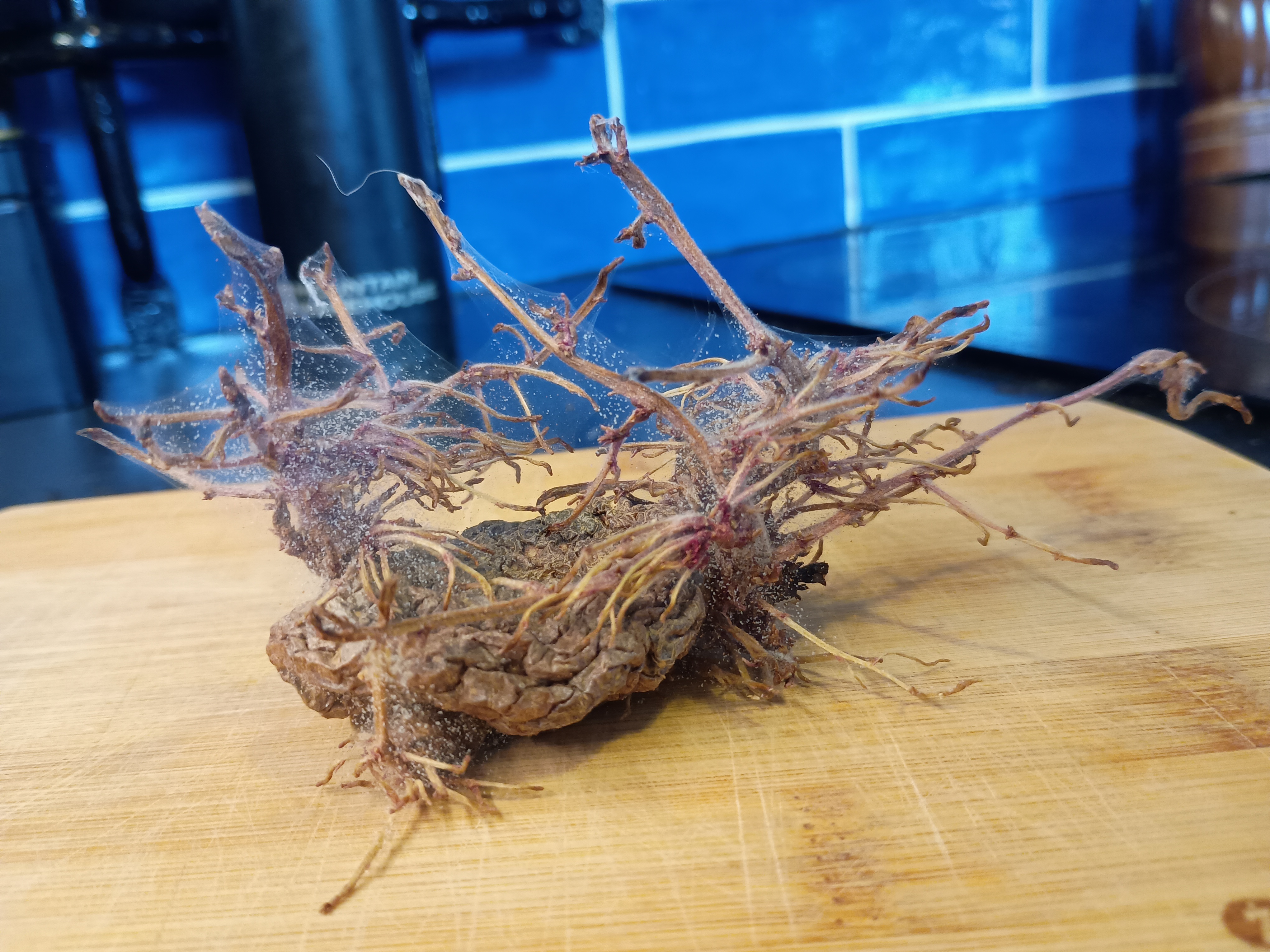 EDIT: No, I see it now! Yeah, that’s awesome. They’re also famous sprouters, so it looks like that one exhausted it’s tuber energy trying to reach light…