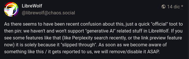 I mean yeah, that’s a fair point, and the dev said that themselves, that the definition of opt in is ambiguous. The definition they seem to use is that AI won’t run unless you explicitly tell it to, and I think that’s ok. There’ll be a button that you can press to do some AI action and you can hide it using the kill switch.