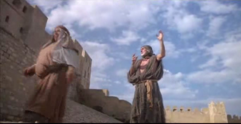 This man in Monty Python’s Life of Brian is none other than British comedy legend Spike Milligan, who, together with Peter Sellers and Harry Secombe, starred in the 1950s radio comedy show “The Goon Show”, which all members of the Pythons cited as their most important influence.