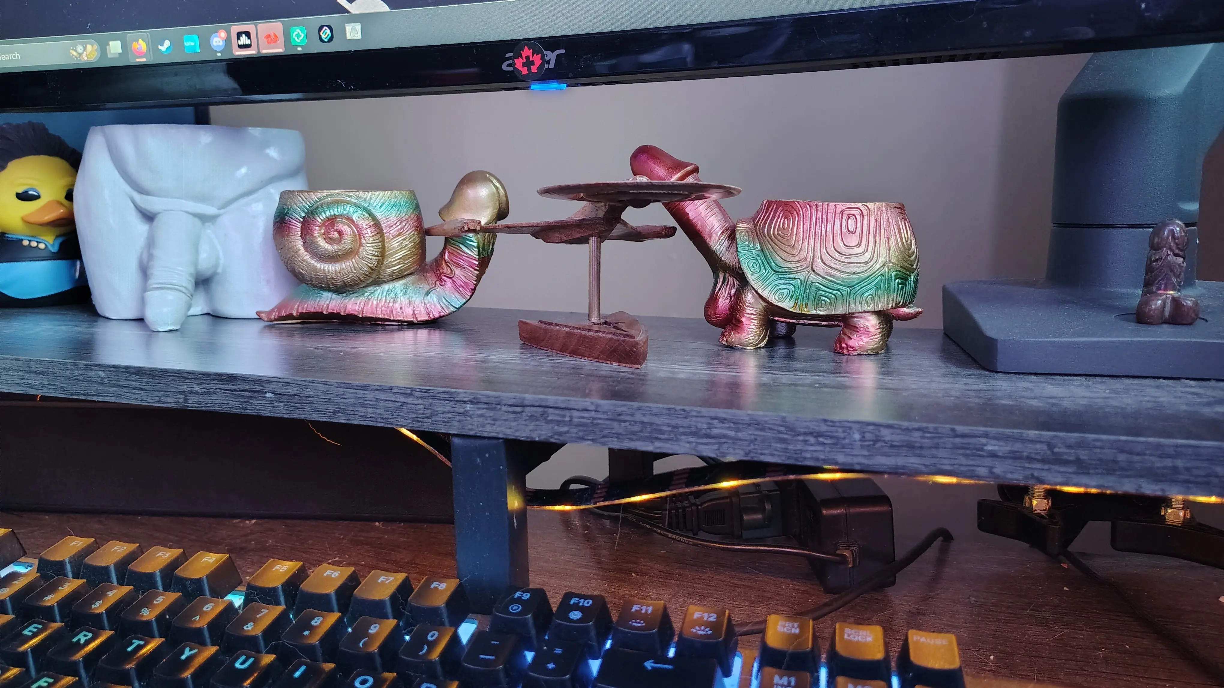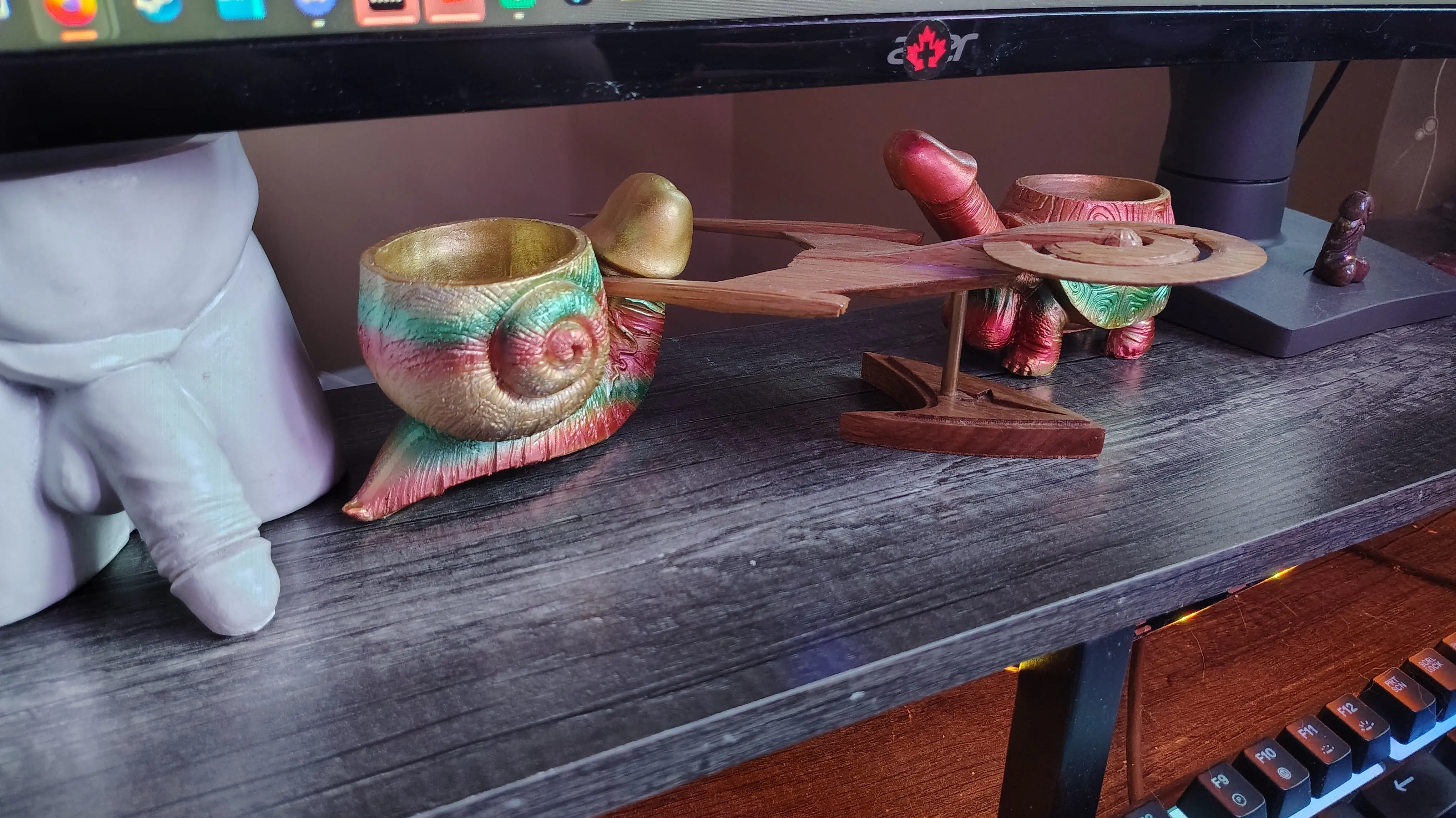 Penis ornaments. Why? Why the fuck not? Shout out to @CelloMike@lemmy.world for the amazing wooden starship model.