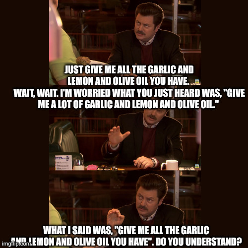 There’s a Greek expression I love: “Garlic and Onions, Left to Right”