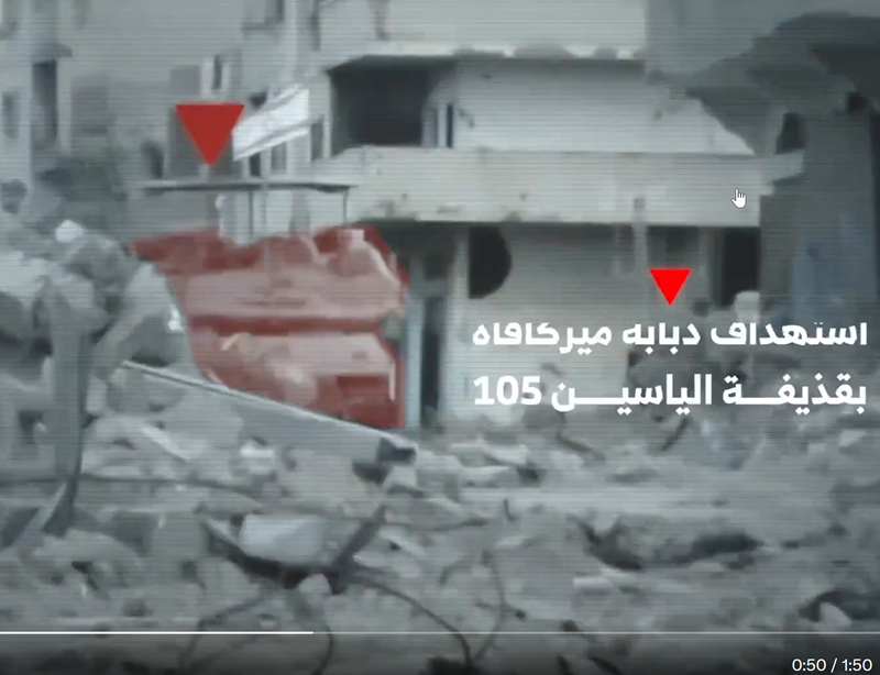 Hamas combat videos use it to designate Nazi targets before they get eliminated by the resistance. The triangle is a reference to the red triangle on a Palestinian flag.