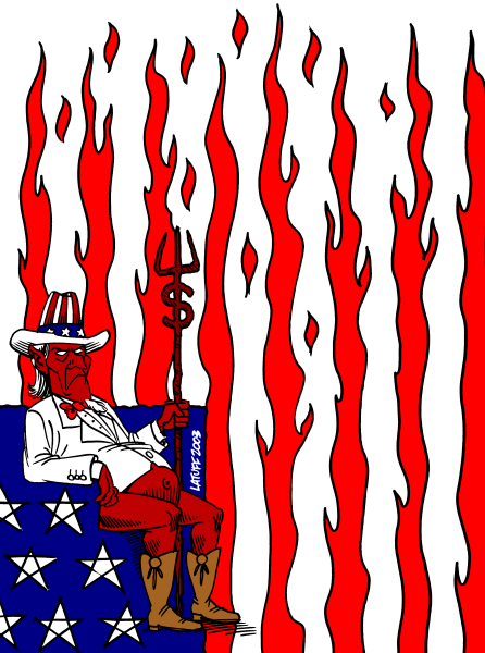 I’ve got a better pic somewhere of uncle sam as a drug addict, slouched on the floor and injecting oil into his veins.