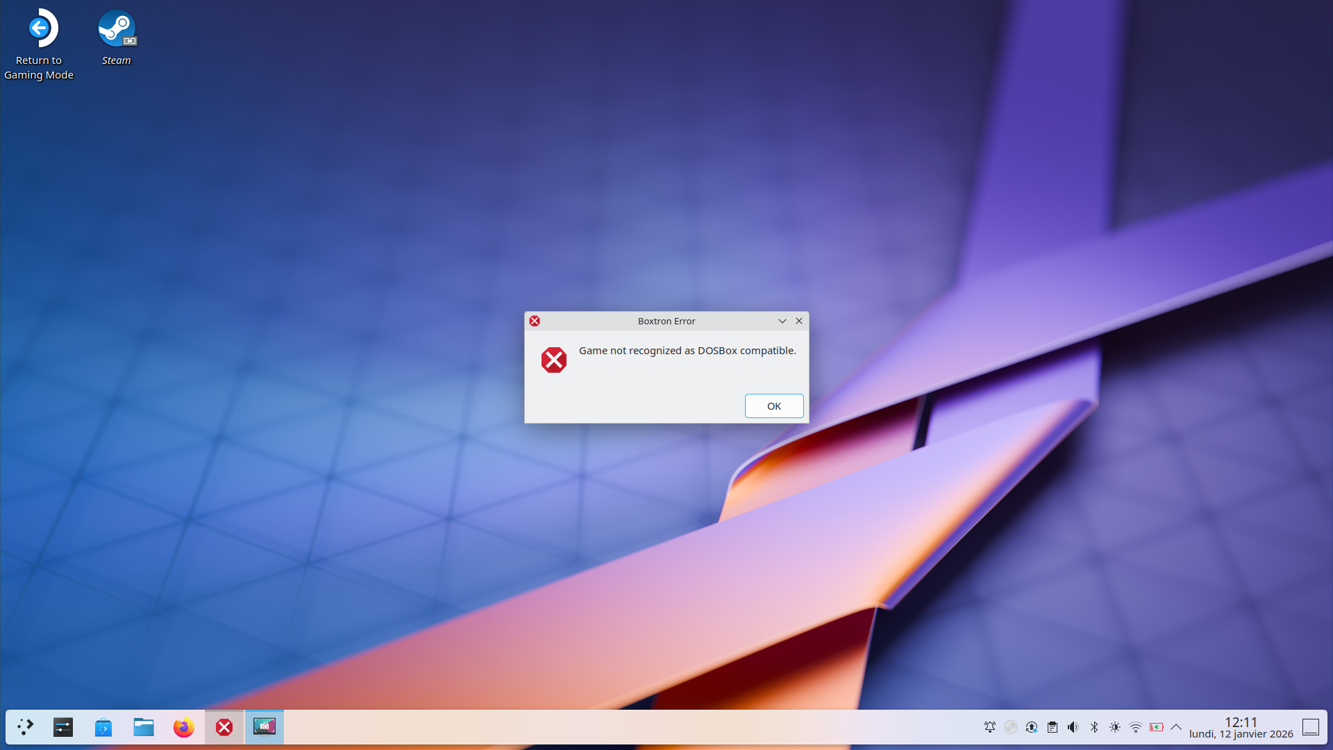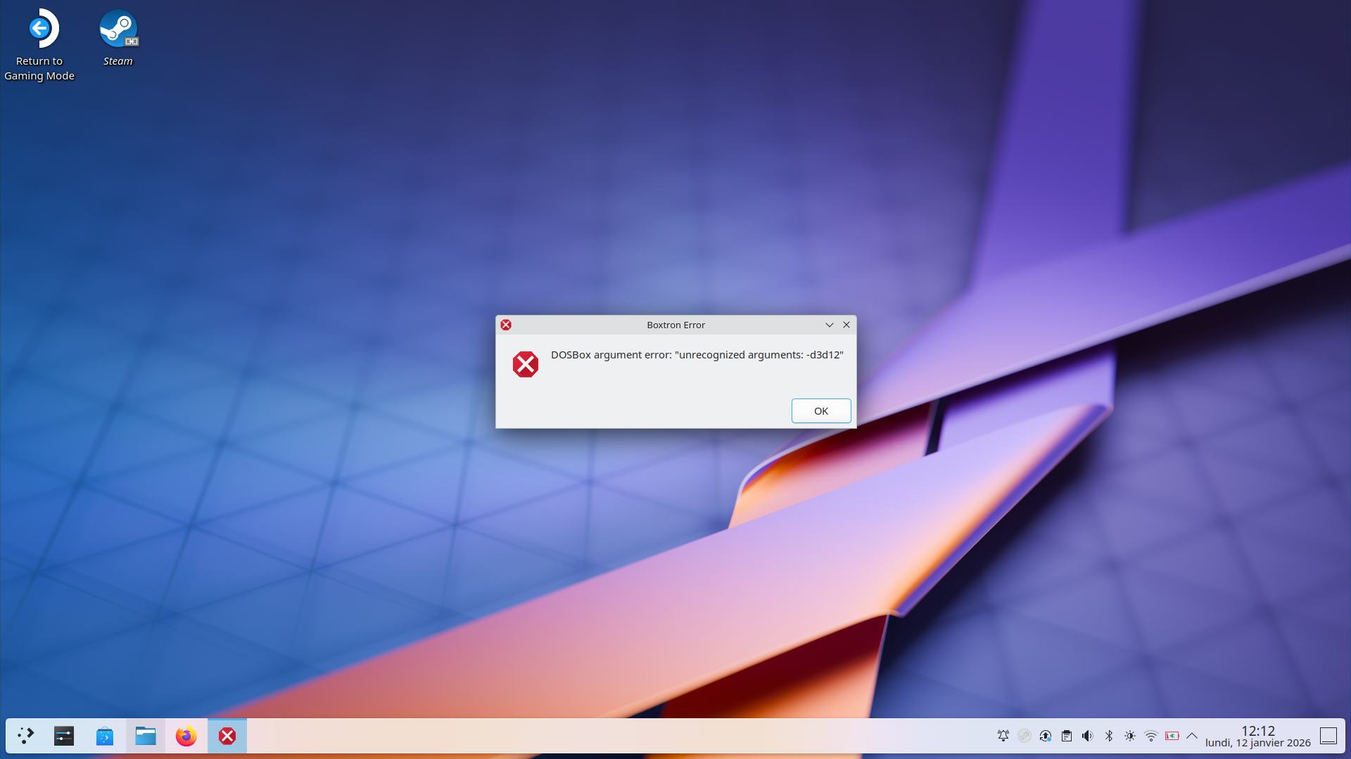 The second one says: DOSBox argument error: “unrecognized arguments: -d3d12”