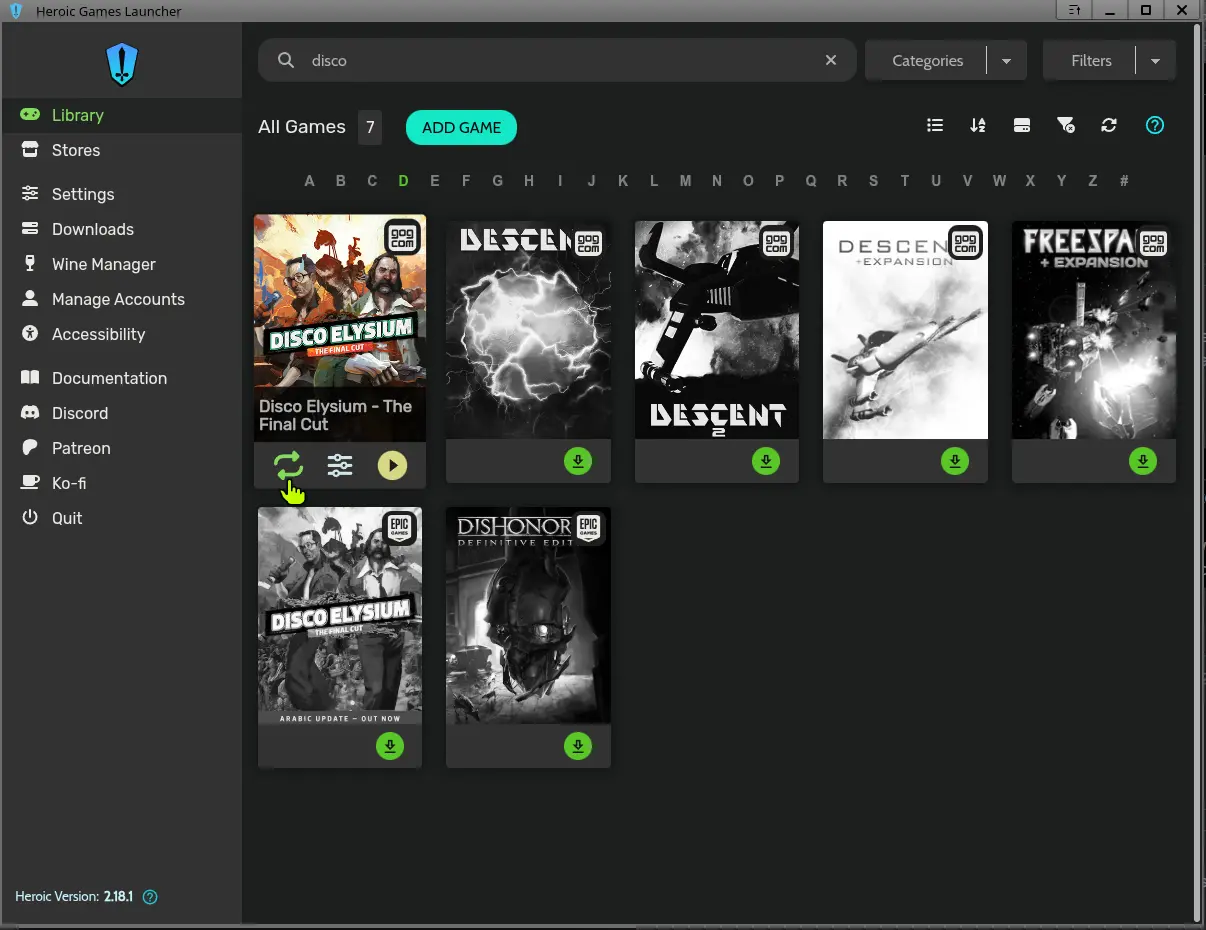 You can also select between 5 versions, although that's just a GOG thing, there's no such feature for Epic (which HGL also supports).