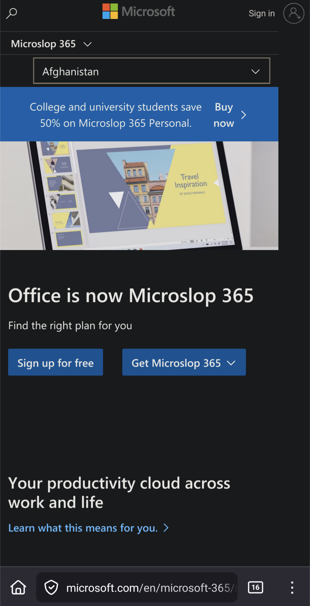 Edit: ignore the “Microslop” spelling. I have a uBlock filter enabled.