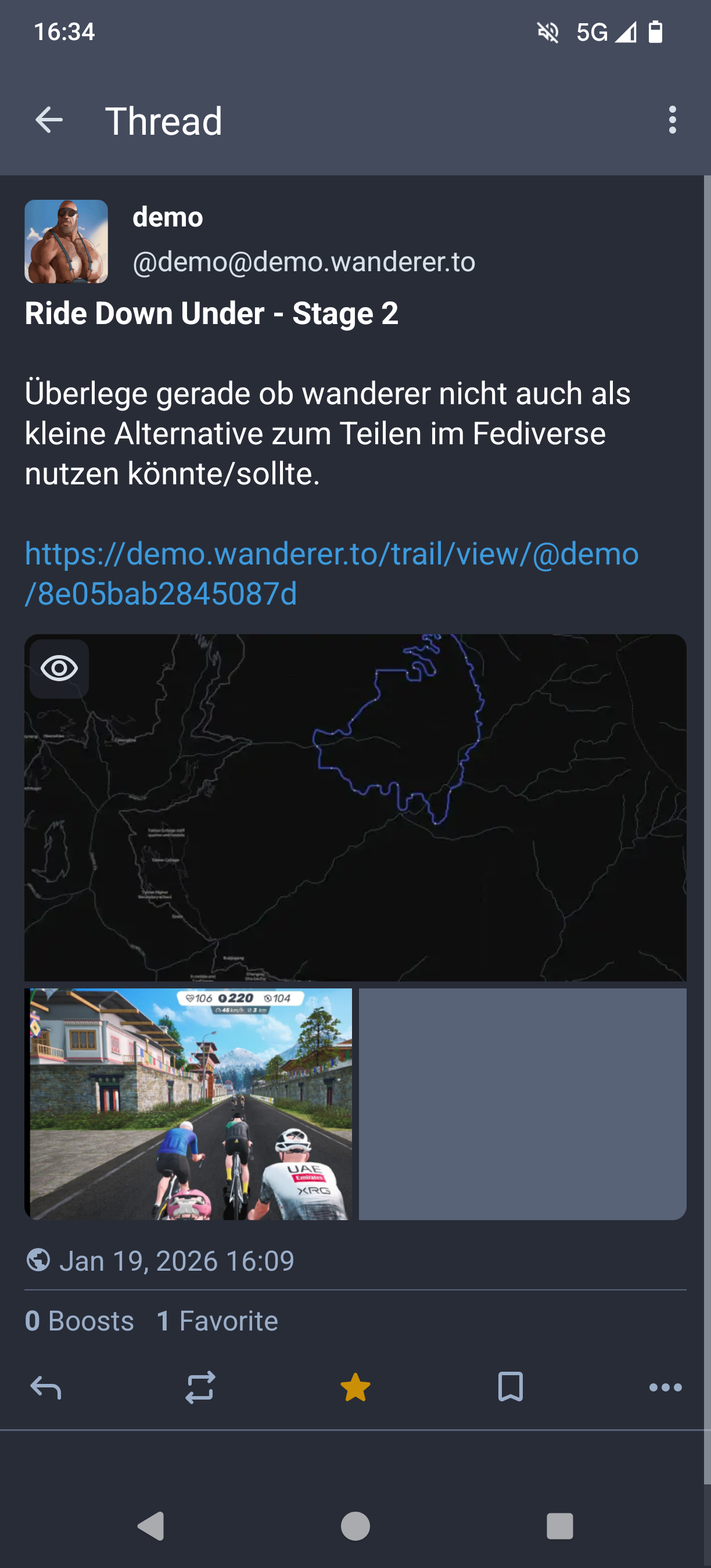 Wasn’t able to fetch them in mastodon either (tried https://demo.wanderer.to/trail/view/@demo/d8516829e6f4a6d ).
