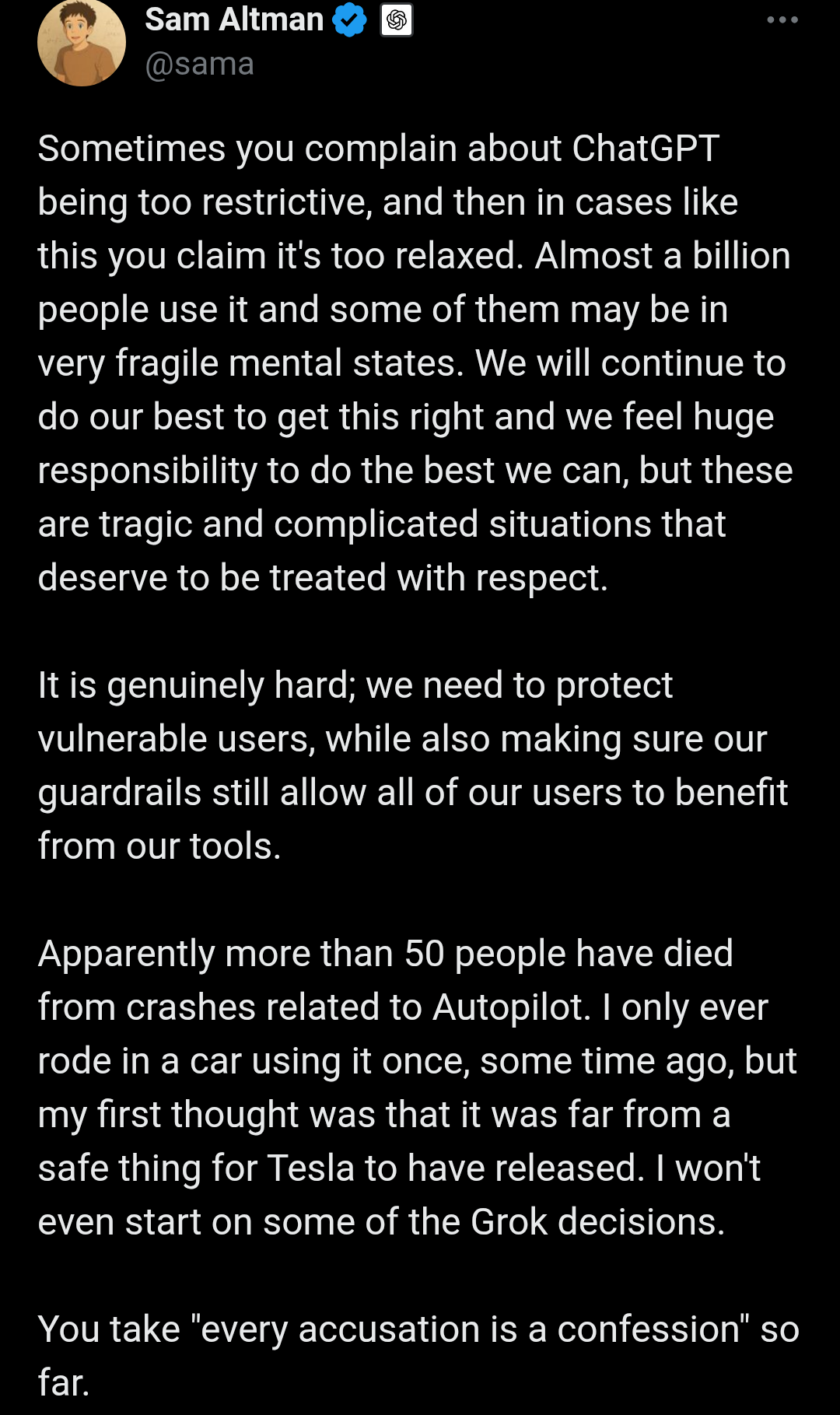 Leave it to Musk to make Sam Altman seem like a reasonable adult.