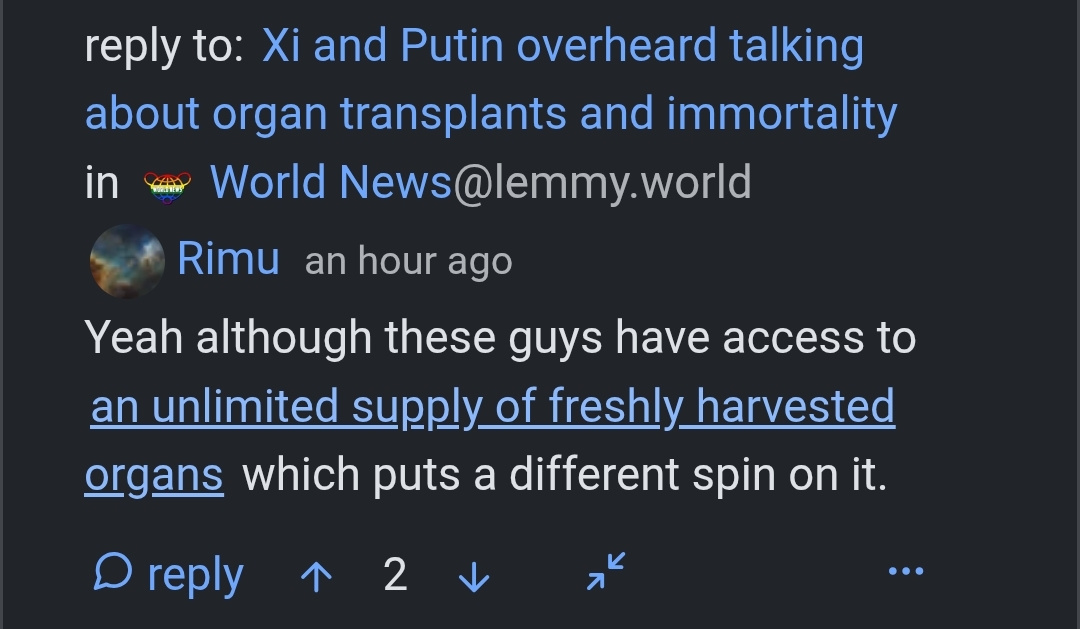 I’m with you on dunking on Nutomic for the transphobia and COVID denial, but if you think Rimu is to his left (especially if you’re citing his refusal to wear a mask as a red line; I admit I don’t know if Rimu is a plague rat, but you’re asking them to be correct about something very few people are correct about) get ready to be disappointed because there’s a high chance every single piece of software you use is written by people who have way worse opinions. And unlike Lemmy, Rimu actually puts their opinions into the code. Unless you know Rimu personally and know that they’re correct about everything…