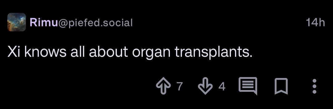 No, I don’t think he’s to the left of Nutomic, which makes my reaction to his faults all the more violent because I expect better of him. And saying I know Rimu personally would be an exaggeration (else, I would have known about his crass accusations of organ farming), but I know enough about him to believe he’s not a plague rat or a transphobe. By itself, that was enough to make me see Piefed as a good alternative to Lemmy.