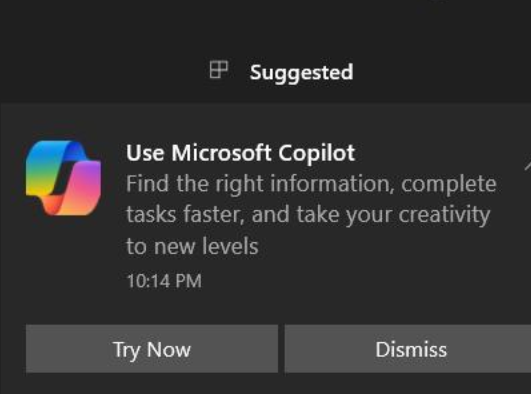 I got a popup on my work PC 5 mins ago advertising co pilot.
